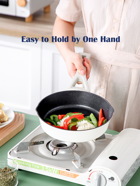 Titanium Nonstick Deep Frying Pan Skillet with Lid, 9.4 inch, Healthy Blue Crystal Particles