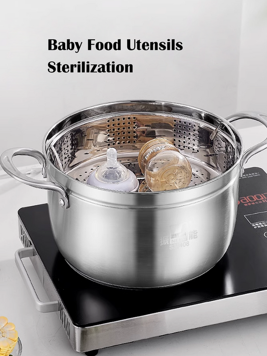 Stainless Steel Steamer Pot with Lid, 10.4 inch, triple bottom, Steaming Pot Cookware For Vegetable, Sauce, Food